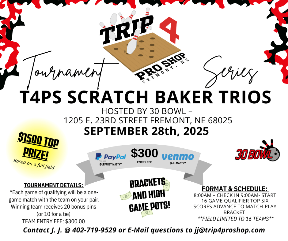 I host and run a variety of bowling tournaments year-round—from fun local events to competitive scratch formats. My tournaments are designed to bring the community together, raise the stakes, and reward great bowling. Follow along at the Trip 4 Pro Shop Tournament Series Facebook page for all the action!